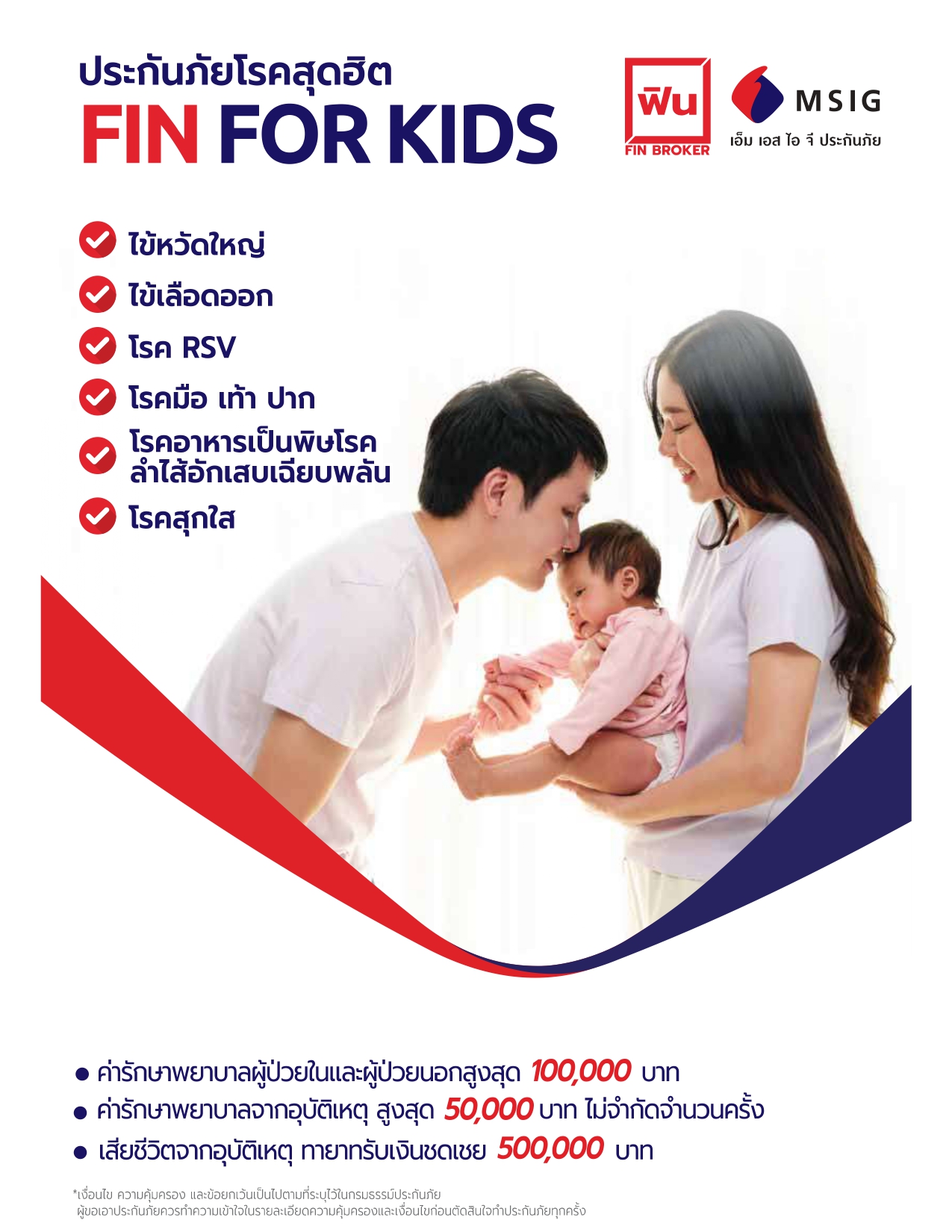 ประกันภัยอุบัติเหตุส่วนบุคคล คุ้มครองอุบัติเหตุและโรคฮิตในเด็ก แผนความคุ้มครอง 4 โรค (โรคไข้เลือดออก, มือเท้าปาก, RSV, ไข้หวัดใหญ่)